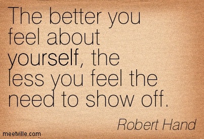 “The better you feel about yourself, the less you feel the need to show off.” – Robert Hand