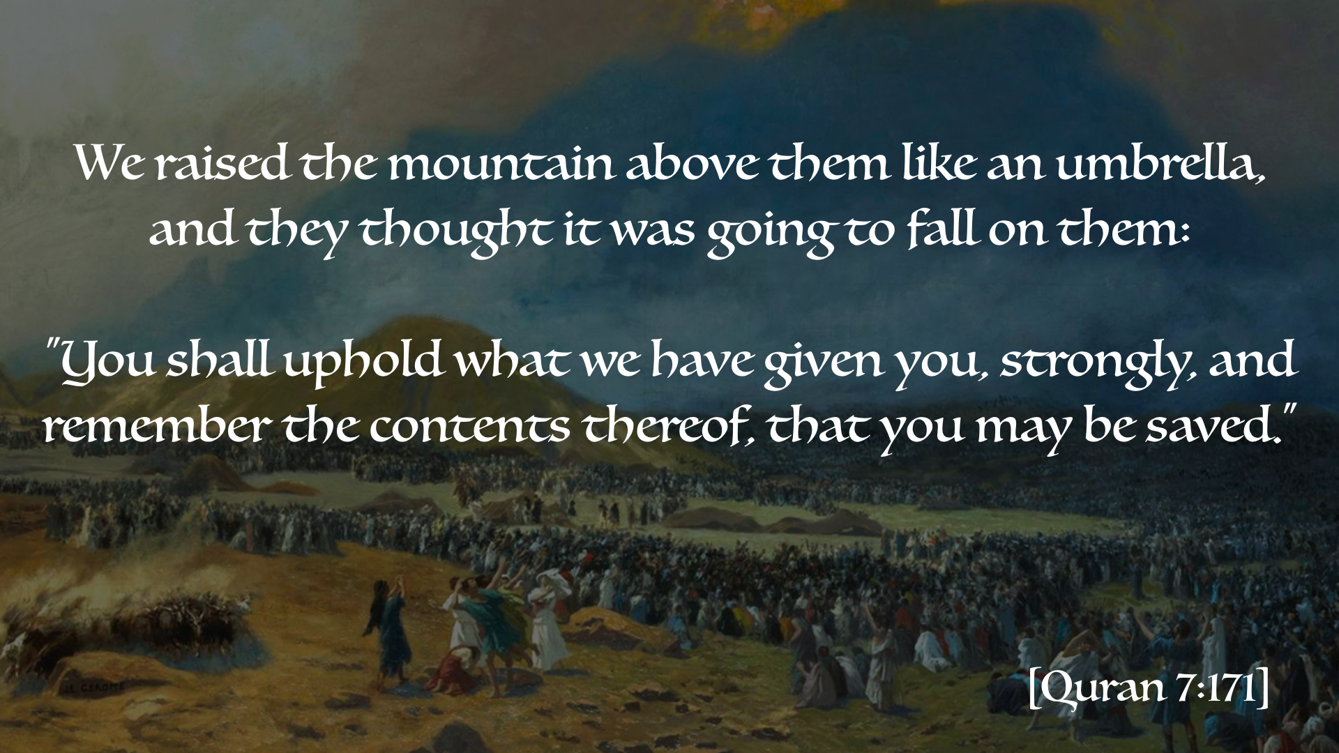 We read in the Quran in the following passages that at some point in the history of the Children of Israel Mount Sinai was raised above them and the following commandments were given to them. [Quran 7:171] We raised the mountain above them like an umbrella, and they thought it was going to fall on them: … Continue reading Bible vs. Quran – Raising of Mount Sinai