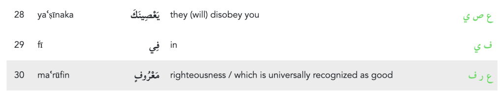 Another interesting location we see the root ع ر ف used is in 2:198 for the name of Mount Arafat (عَرَفَاتٍ), where during Hajj we implore God for guiding us and for forgiveness.