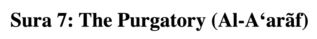 Sura 7 of the Quran is entitled الأعراف (Al-A‘arãf) and is translated as The Purgatory. When we look up the meaning of Purgatory in the dictionary, we get the following definitions: