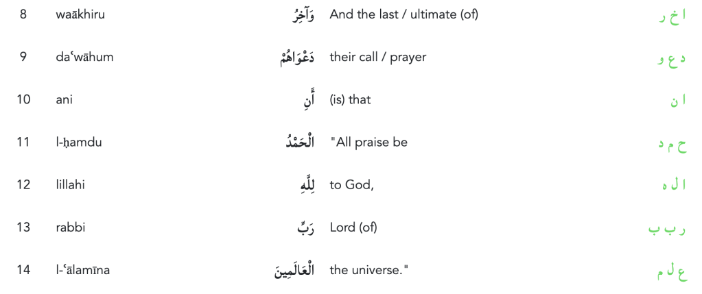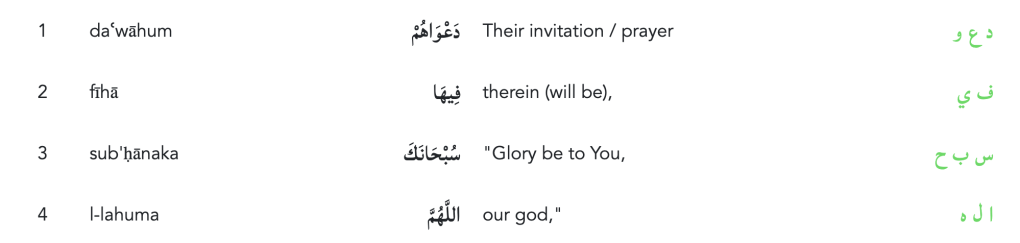 For years I would read the following verse in Sura 10 verse 10 with the understanding that the ultimate prayer of a person is “Praise be to God, Lord of the universe,” as in this is the best prayer one could make.