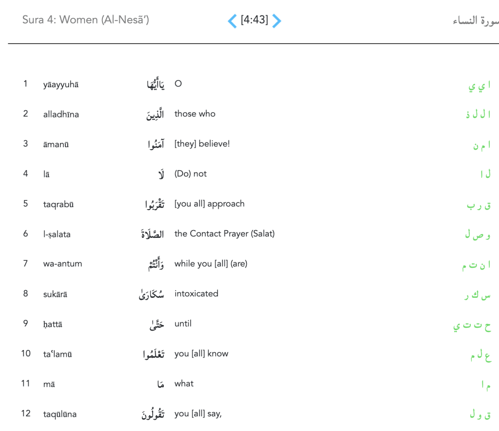 يَاأَيُّهَا الَّذِينَ آمَنُوا لَا تَقْرَبُوا الصَّلَاةَ وَأَنْتُمْ سُكَارَىٰ حَتَّىٰ تَعْلَمُوا مَا تَقُولُونَ