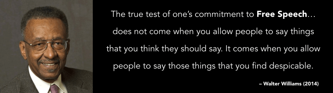 Economist Walter Williams stated the following regarding the true test to a an individuals commitment to the freedom of speech: