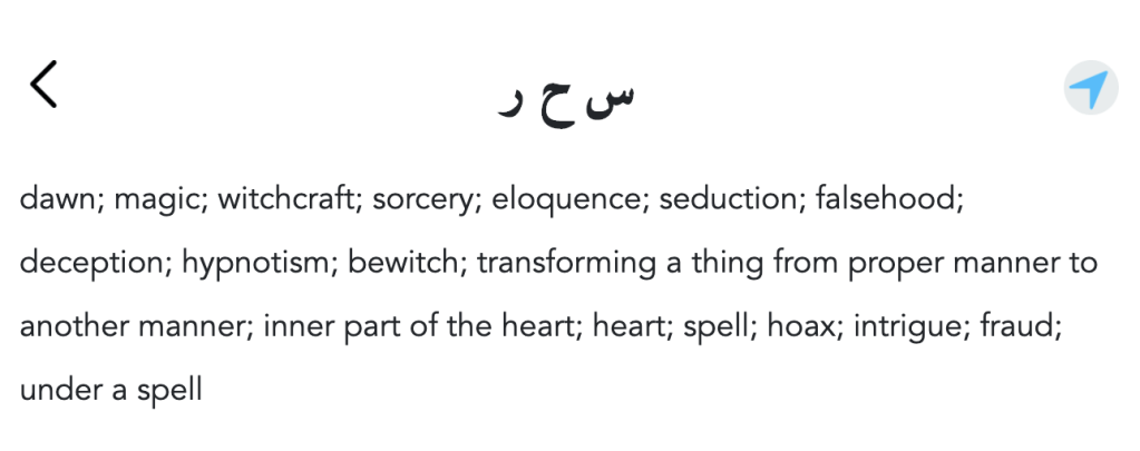 God calls this knowledge السِّحْرَ / l-siḥ’ra and is translated as “magic”, “sorcery”, or “witchcraft.” When we look at the root of this word we see it has additional derivative meanings which have to do with the manipulation of speech e.g. eloquence, seduction, hypnotism, or transforming a thing from a proper manner to another manner.
