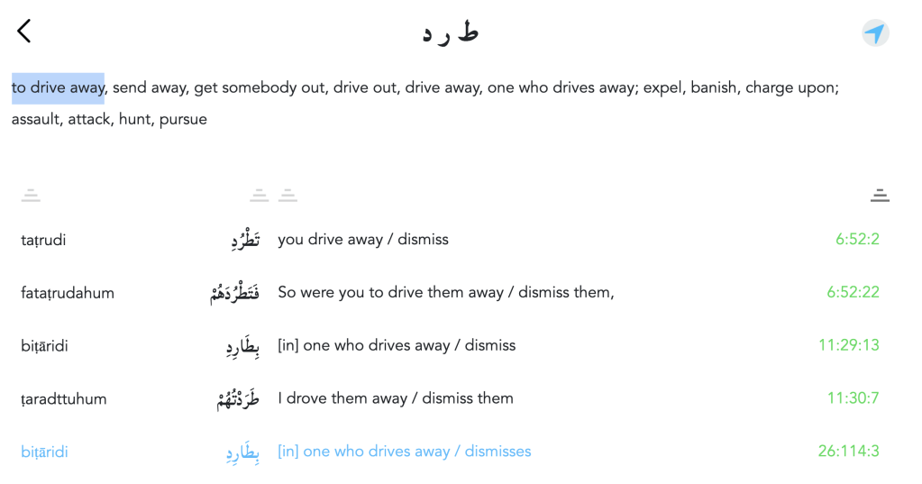 It is interesting that the word that is translated as “dismiss” is طَارِدِ (ṭāridi) which comes from the root ط ر د which also has the meaning of driving someone out.