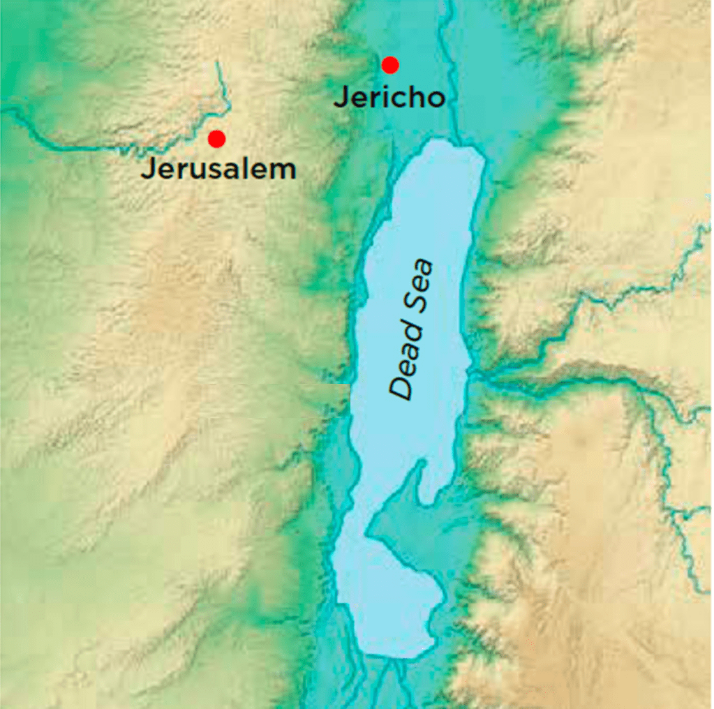 Another point of interest in the area is the Dead Sea basin. The importance of these two areas is that the Dead Sea basin is the lowest land on earth at ~414m below sea level, and Jericho as well as being the oldest city in existence it is also the lowest city on Earth at ~258m below sea level.