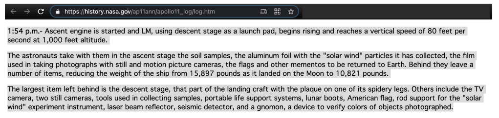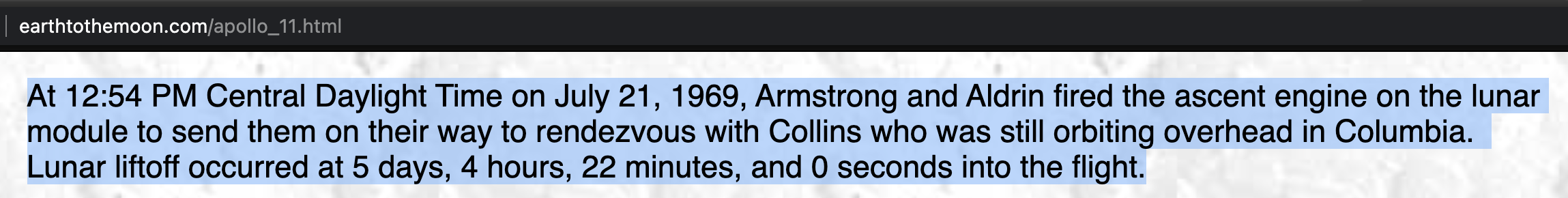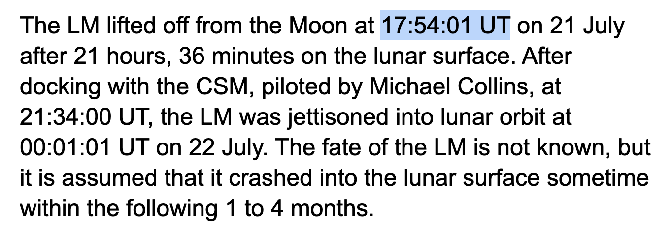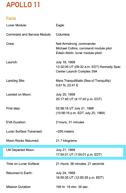 So, the common factor across the whole world was that this event occurred exactly at 54 minutes, which corresponds with Sura 54. But NASA kept very detailed logs of the mission to the second. So can we see the exact second that the lunar lift occurred?