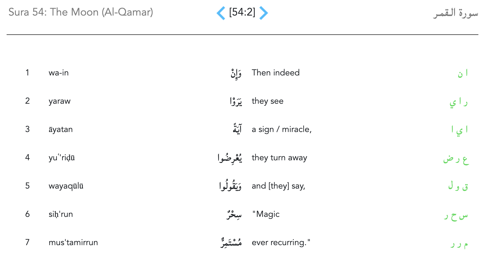 [54:2] Then they saw a miracle; but they turned away and said, “Old magic.”