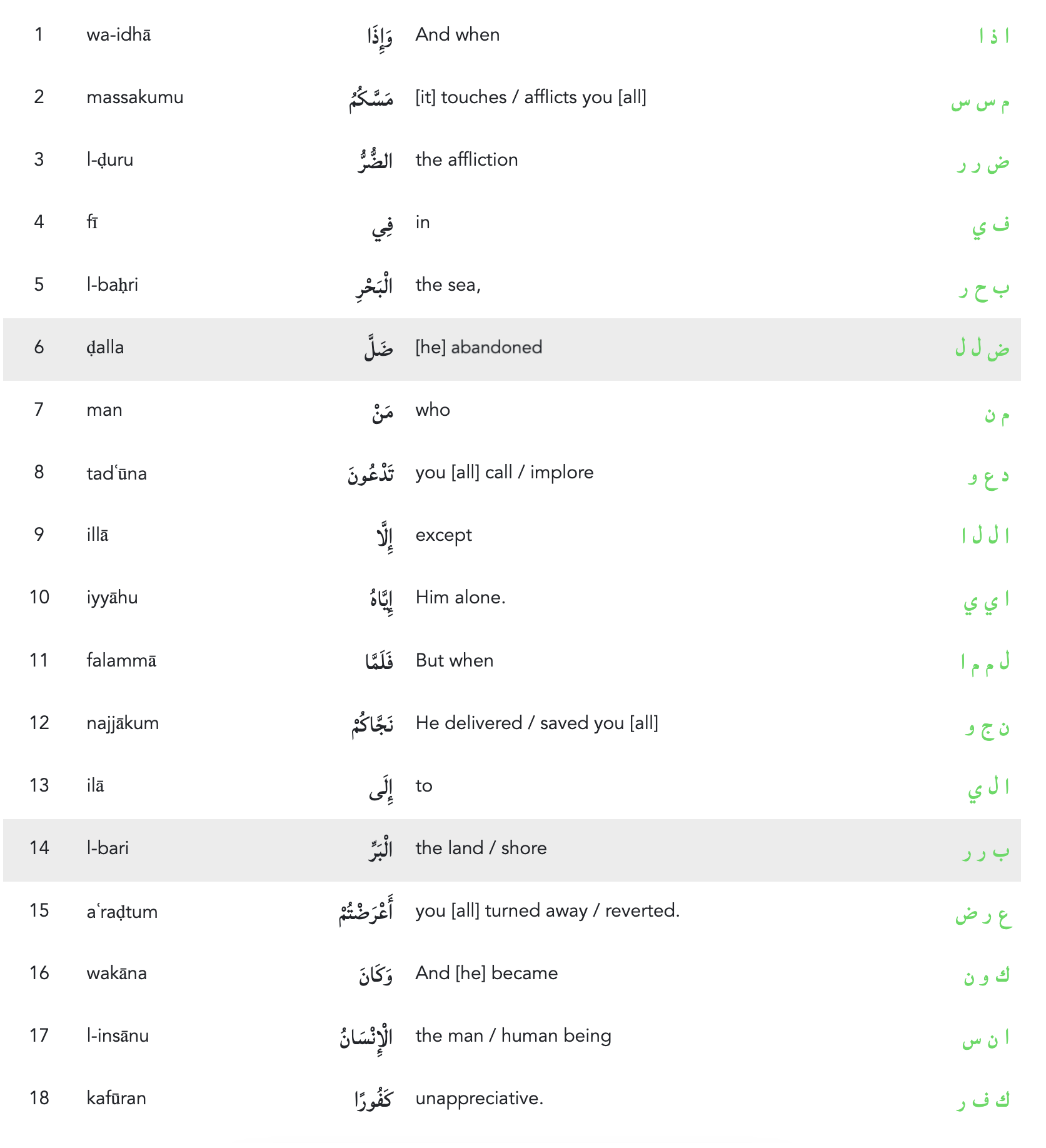 وَإِذَا مَسَّكُمُ الضُّرُّ فِي الْبَحْرِ ضَلَّ مَنْ تَدْعُونَ إِلَّا إِيَّاهُ فَلَمَّا نَجَّاكُمْ إِلَى الْبَرِّ أَعْرَضْتُمْ وَكَانَ الْإِنْسَانُ كَفُورًا