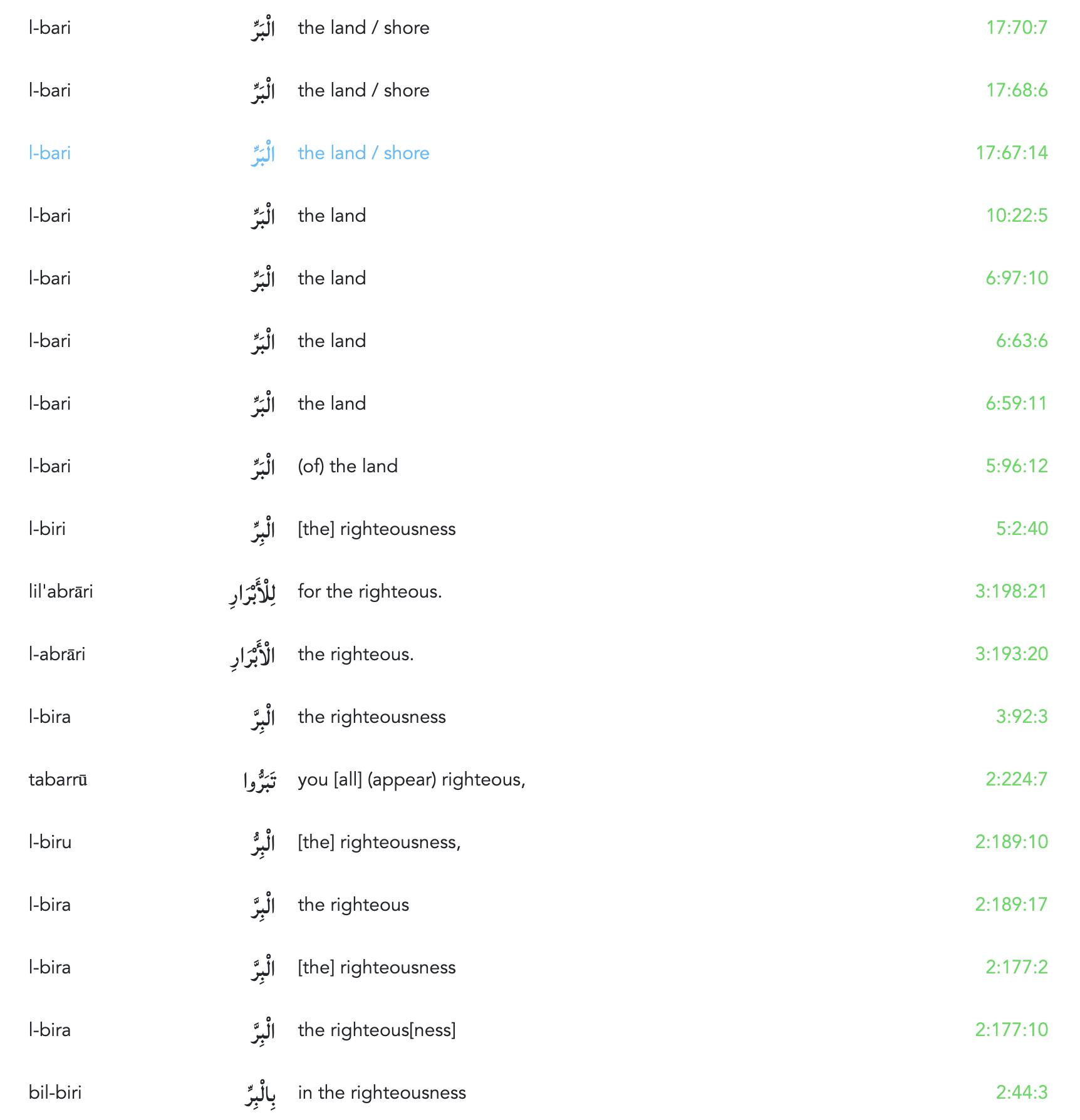 The other interesting word selection is the word الْبَرِّ / l-bari which means land or shore, but has the same root as the word الْبِرِّ / l-biri which means “[the] righteousness”.