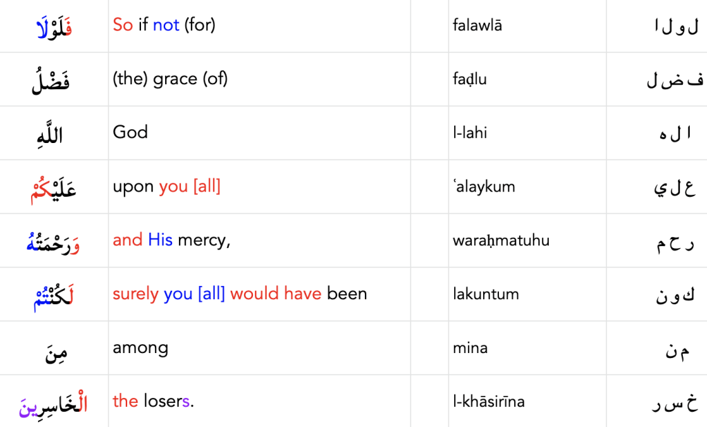 (٦٤) ثُمَّ تَوَلَّيْتُمْ مِنْ بَعْدِ ذَٰلِكَ فَلَوْلَا فَضْلُ اللَّهِ عَلَيْكُمْ وَرَحْمَتُهُ لَكُنْتُمْ مِنَ الْخَاسِرِينَ
