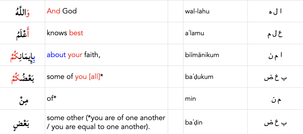 One thought on “3:195 and 4:25: Meaning of Badukum min Badin”