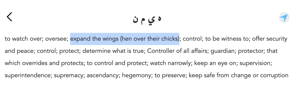 The word that is translated as “supersedes” is وَمُهَيْمِنًا / wamuhayminan. The meaning of this word is for one who guards, determines the truth, or that which overrides and protects. This word comes from the root with the derivative meaning of a bird who expands their wings over its chicks. This is similar to the function of the Quran, not only does it confirm the previous scriptures, but it also protects and overrides what is in the previous scriptures. Such that if there is a disconnect between what is written in the Bible and Quran then we must go with what the Quran says.