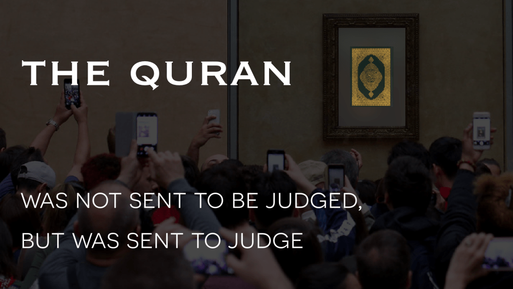 Once we confirm that the Quran is the book of God for all of mankind, then we must realize that the Quran is not here to be judged by us, it is here to judge us.