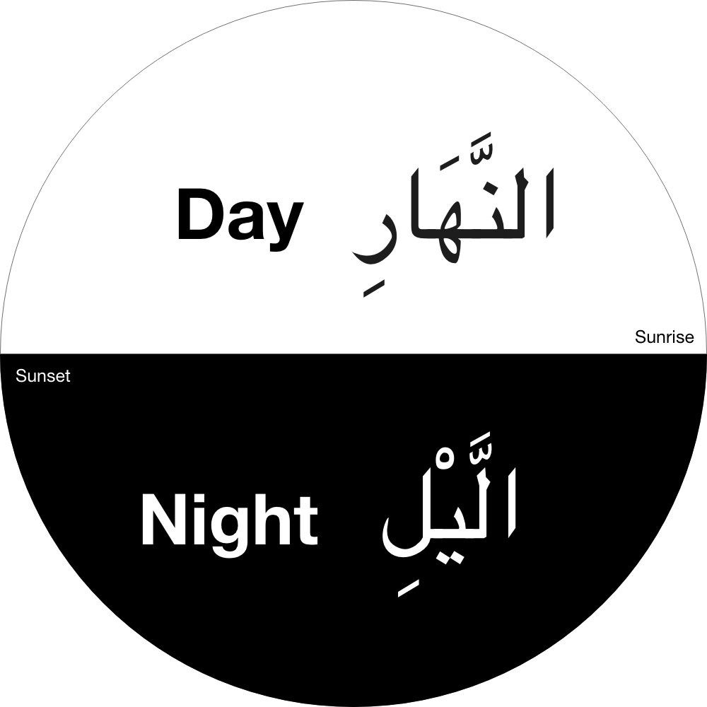 The Quran distinguishes between the night (layl) and the day (nahar).