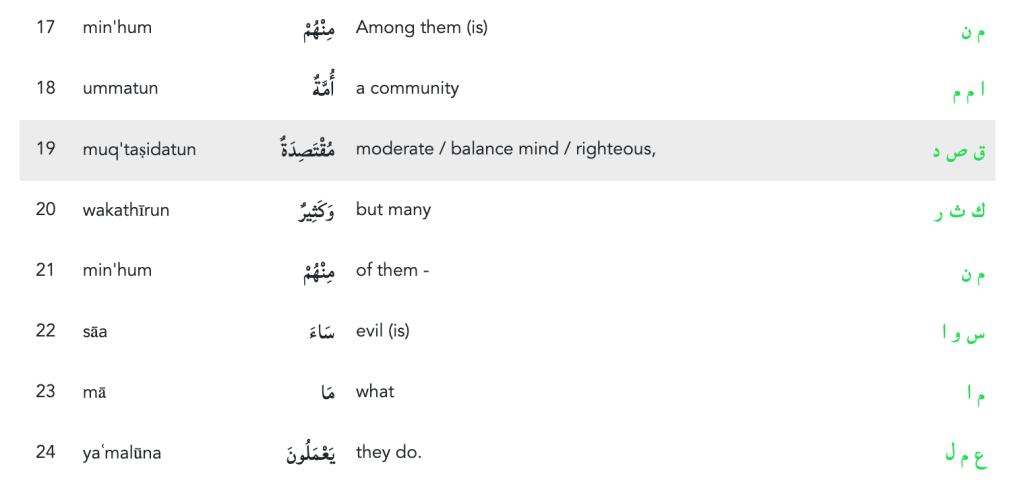 وَلَوْ أَنَّهُمْ أَقَامُوا التَّوْرَاةَ وَالْإِنْجِيلَ وَمَا أُنْزِلَ إِلَيْهِمْ مِنْ رَبِّهِمْ لَأَكَلُوا مِنْ فَوْقِهِمْ وَمِنْ تَحْتِ أَرْجُلِهِمْ مِنْهُمْ أُمَّةٌ مُقْتَصِدَةٌ وَكَثِيرٌ مِنْهُمْ سَاءَ مَا يَعْمَلُونَ