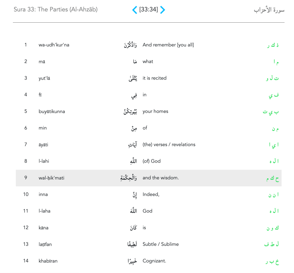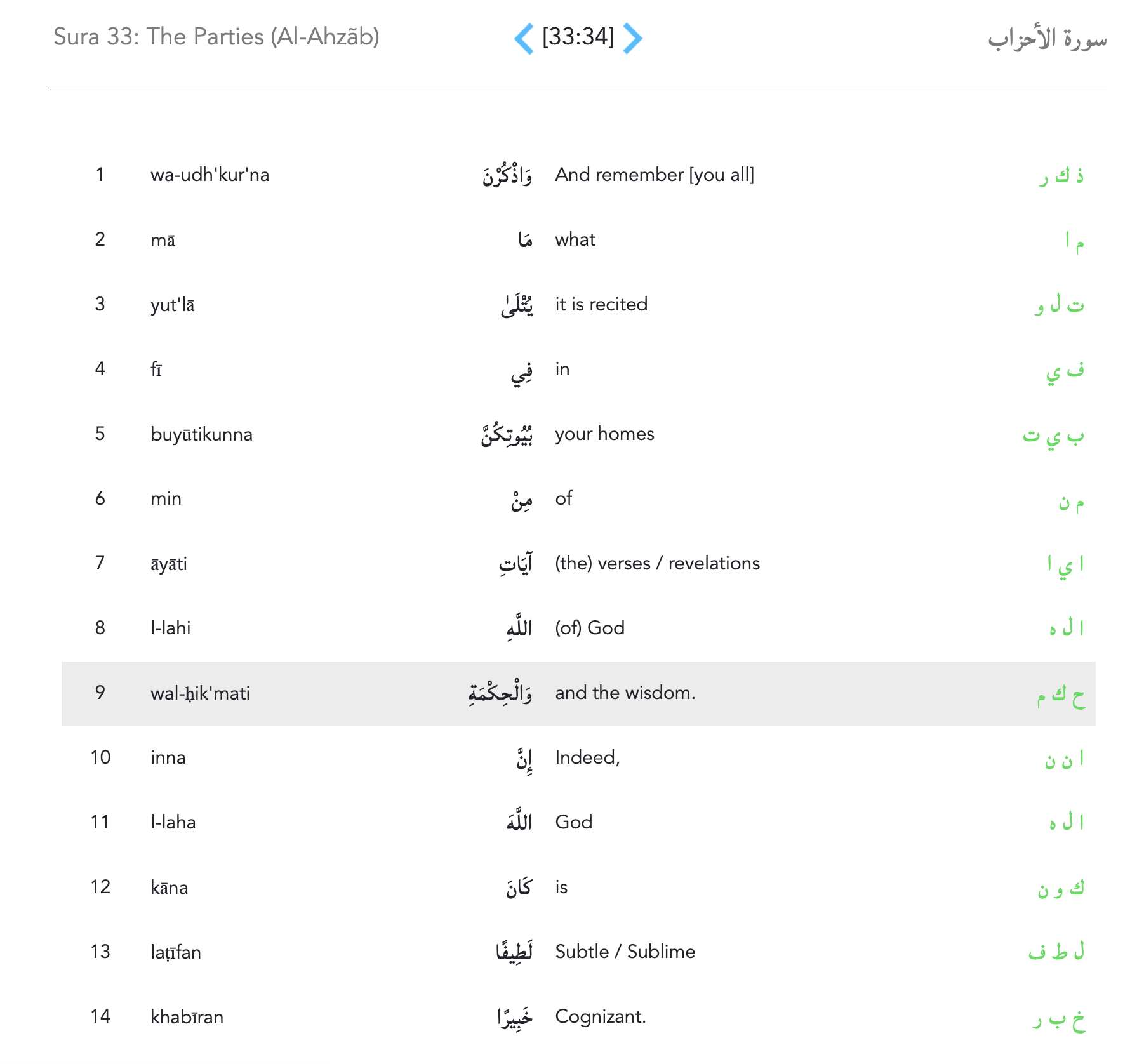 [33:34] Remember what is being recited in your homes of GOD’s verses and the wisdom. GOD is Sublime, Cognizant.