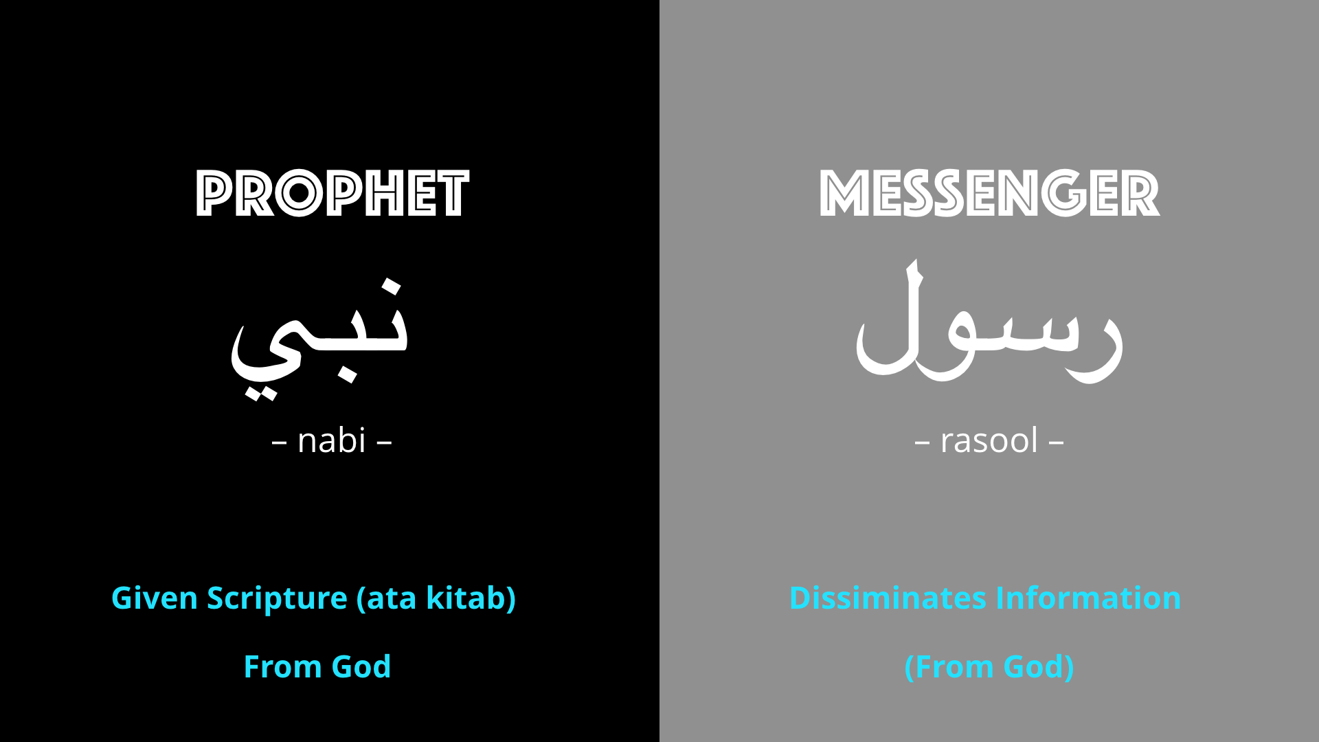 Much debate has been had regarding what is the difference between a nabi (prophet) and a rasool (messenger). Some claim that the terms are interchangeable, and some claim they have different meanings. In this article, we will systematically go through the distinction between these two words using the verses of the Quran. In summary here … Continue reading A Comprehensive Guide: The Distinction Between Prophet (Nabi) and Messenger (Rasool)