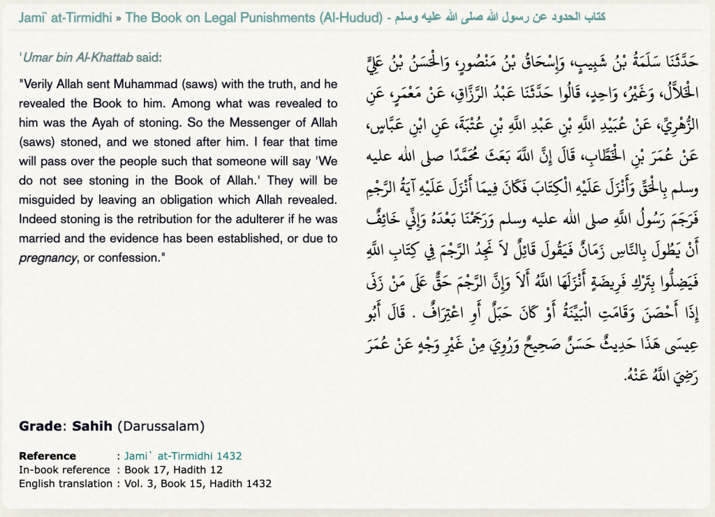 Below is the Arabic of the supposed stoning verse: