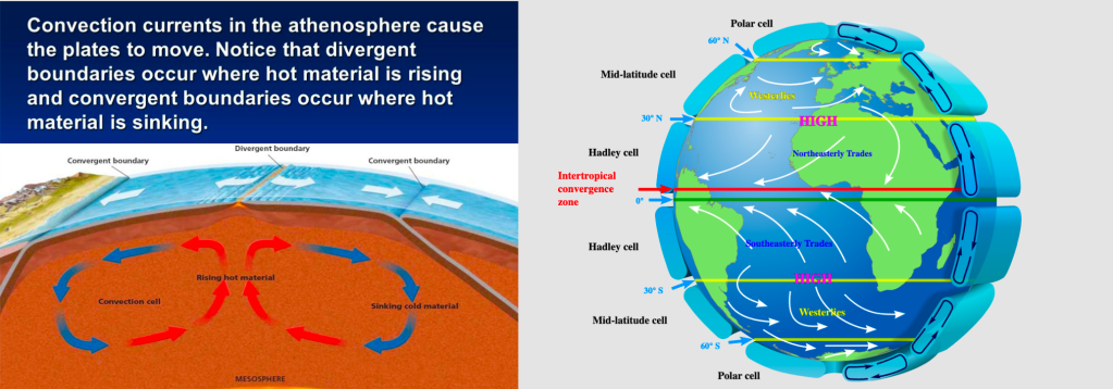 Additionally, these movements of the Earth’s mantles happen in predictable cycles. Similarly, when we look at the atmosphere, we see that the atmospheric cycles occur in a similar moving pattern but at a much faster rate.