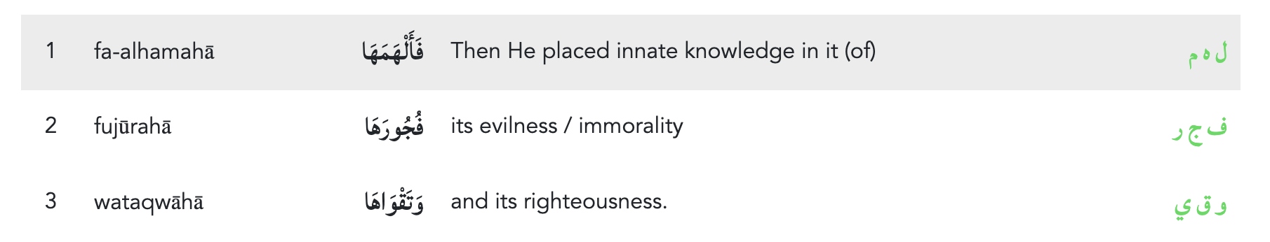 (٨) فَأَلْهَمَهَا فُجُورَهَا وَتَقْوَاهَا