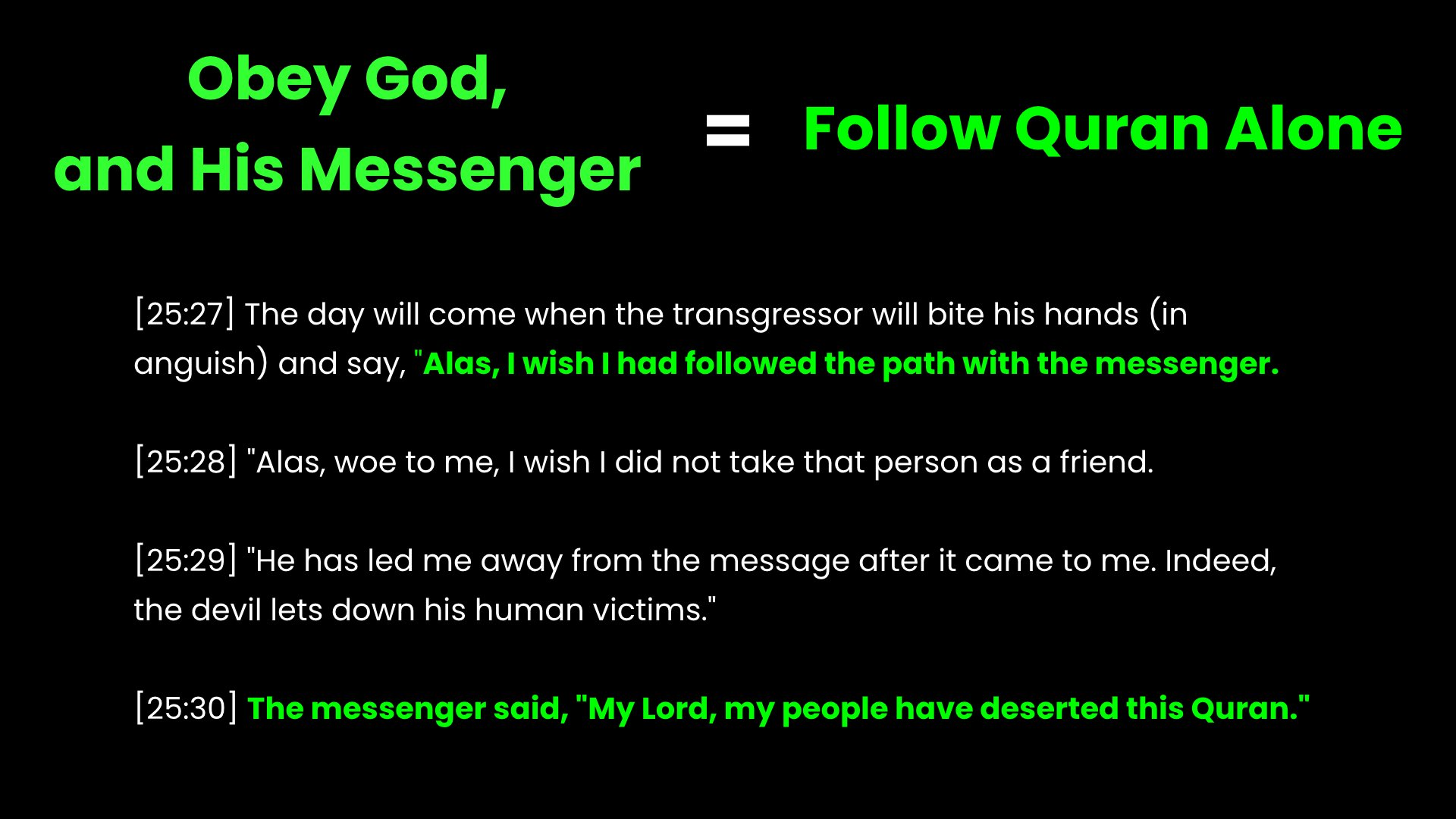 Therefore, if we want to obey the messenger, we must obey their message, which in the case of Muhammad was the Quran alone. This conclusion is best articulated in the following testimony given by a follower of the prophet and the messenger himself on the Day of Resurrection.