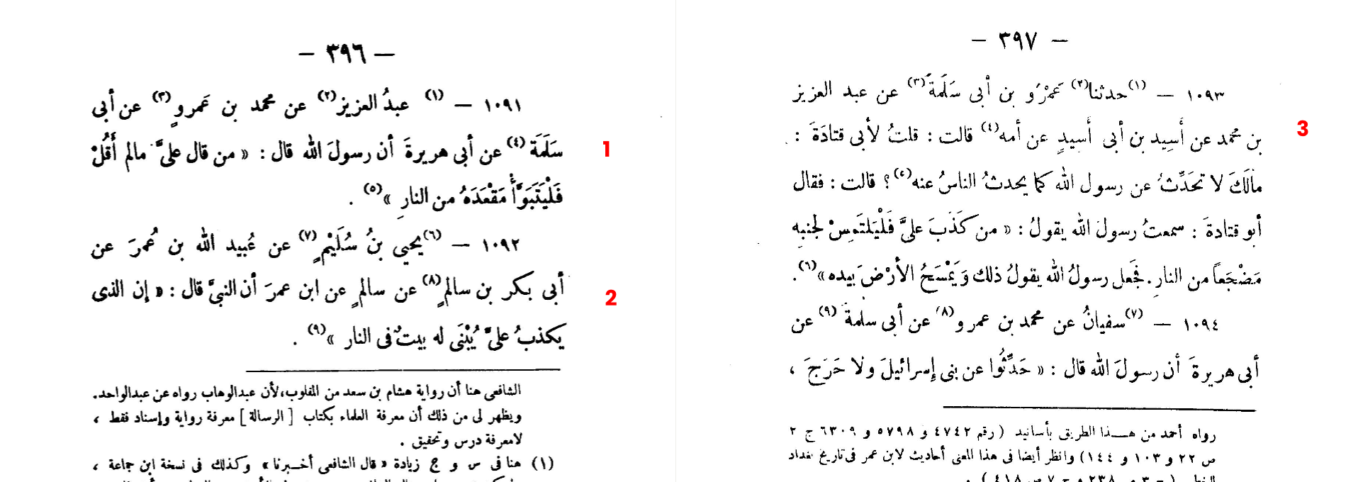 1/ ‘Abd al-‘Aziz from Muhammad ibn ‘Amr, from Abu Salamah, from Abu Hurayrah, that God’s messenger said: “Whoever attributes to me what not I said, then let him take his seat in the Hellfire.”