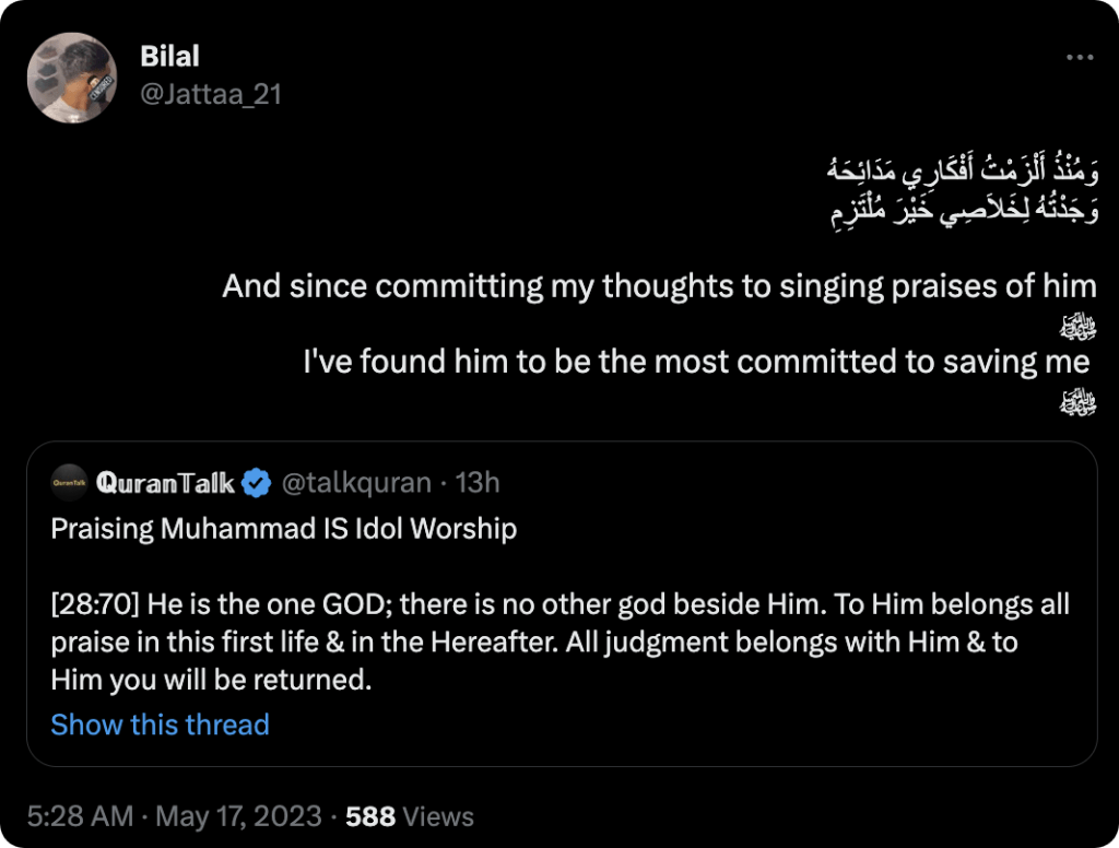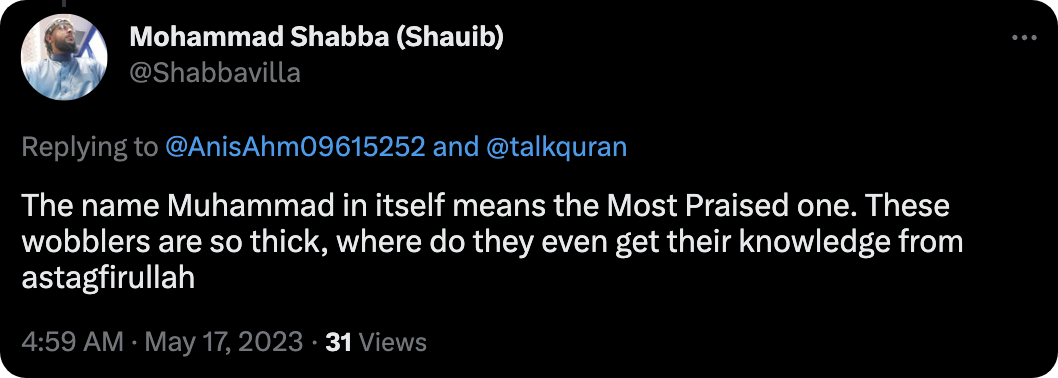 In one video, the Muslim teacher of the Islamic sciences, Anis Ahmed, tries to justify that his praising of Muhammad is praising Allah.
