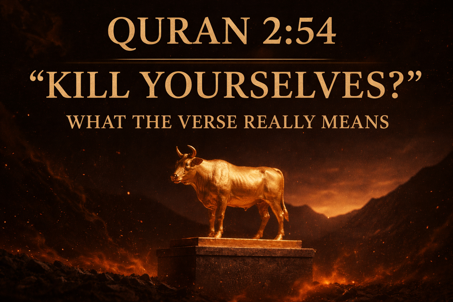 A common understanding among many Muslims is that God commanded the Children of Israel to kill themselves (by slaying the wrongdoers among themselves) for their worship of the calf. This understanding comes from the following verse in 2:54. وَإِذْ قَالَ مُوسَىٰ لِقَوْمِهِۦ يَـٰقَوْمِ إِنَّكُمْ ظَلَمْتُمْ أَنفُسَكُم بِٱتِّخَاذِكُمُ ٱلْعِجْلَ فَتُوبُوٓا۟ إِلَىٰ بَارِئِكُمْ فَٱقْتُلُوٓا۟ أَنفُسَكُمْ ذَٰلِكُمْ خَيْرٌ … Continue reading 2:54 Kill Yourselves?