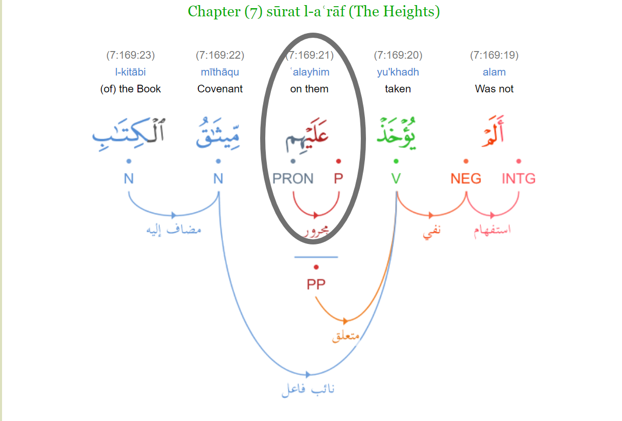 This also shows that if the covenant mentioned in 3:81 was not a covenant from the prophets but actually a covenant with the people of the scripture, we would expect the word “upon them” (ʿalayhim / عَلَيْهِم ) would also be used in this verse to show that the covenant is with another group and not the prophets just like it is done in 7:169.