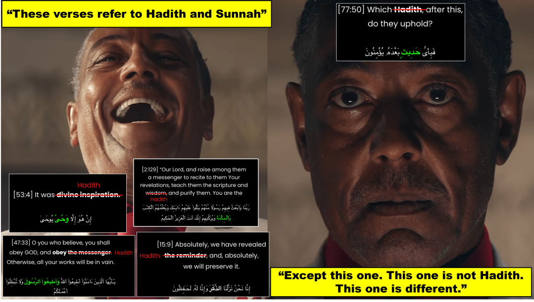Yet, the Hadith is riddled with contradictions—so much so that many books have been written to reconcile and harmonize these contradictions. Because of these obvious contradictions, we get the trope, “For every hadith, there is an equal and opposite Hadith.” The Quran uses this fact to show people that they should not follow these baseless Hadiths.
