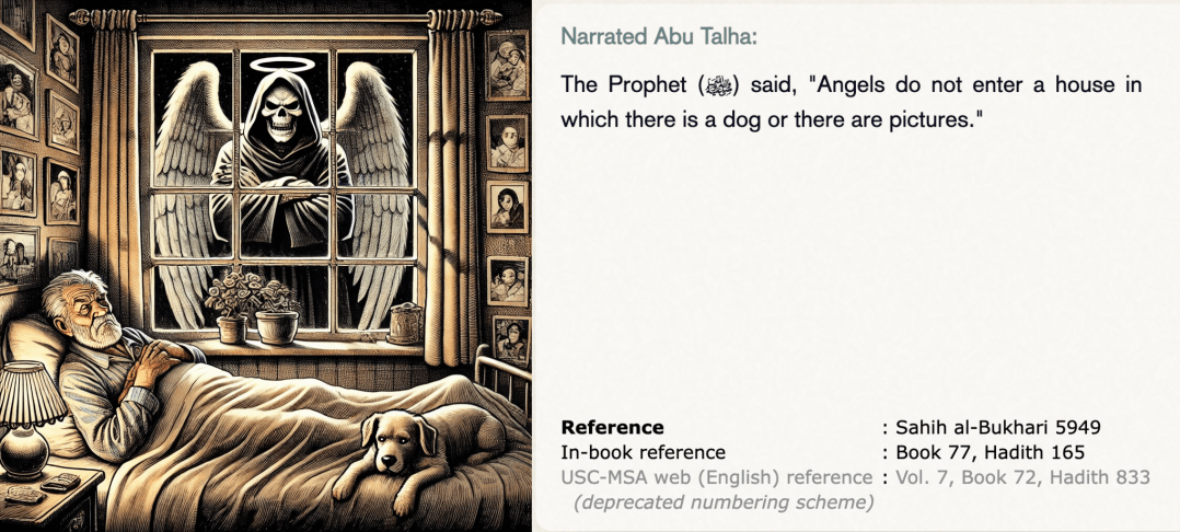 “Angels do not enter a house in which there is a dog or images (pictures or statues).”