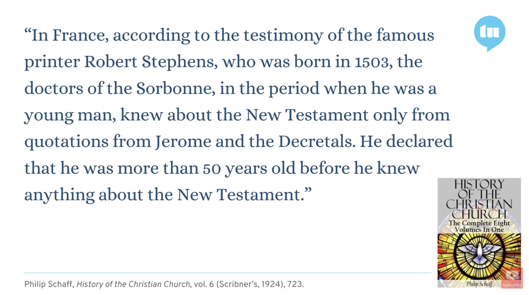 The above slides were from around the 14-minute mark of the video. At around the 15-minute mark of the video, the speaker states that during Tyndale’s life in the 1520s, a survey was conducted within his county of the 311 priests. The survey found that 9 priests didn’t know there were 10 commandments, more than half couldn’t name the 10 commandments, and 30 didn’t know that the Lord’s Prayer was decreed by Jesus. This shows that there is no question that the vast majority of ignorance of the scripture and its doctrine as late as the 16th century, even among their clergy, hundreds of years after the revelation of the Quran.