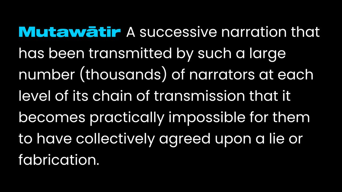 Thirdly, virtually no Hadith is mass-transmitted (mutawatir). The simplest reason for this is that something that is genuinely mass-transmitted does not require a chain of transmitters (isnad). A chain of transmitters is only required if the information is dubious.