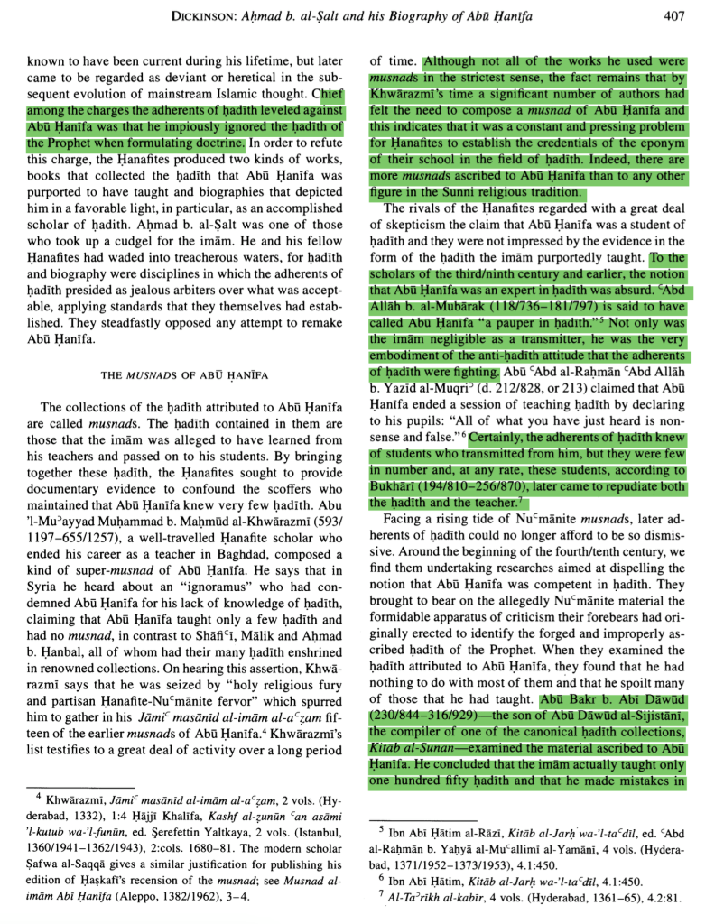 2 thoughts on “Notes & Quotes: Abu Hanifa, Hadith, & Sunni Heresy”