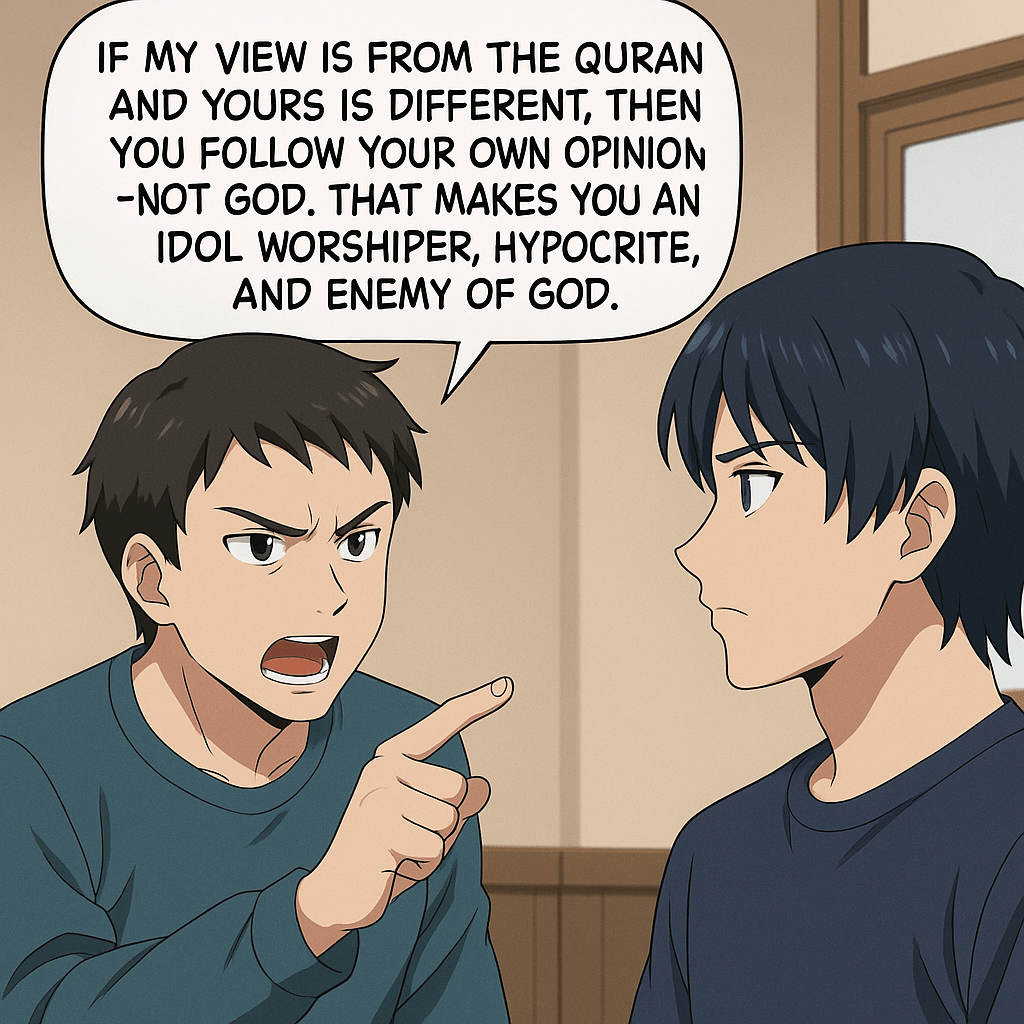 The disagreement is then inflated, moralized, and weaponized. It’s no longer about interpretation. It becomes a question of loyalty, sincerity, and spiritual danger: Who is corrupting the believers? Who is misleading the community?