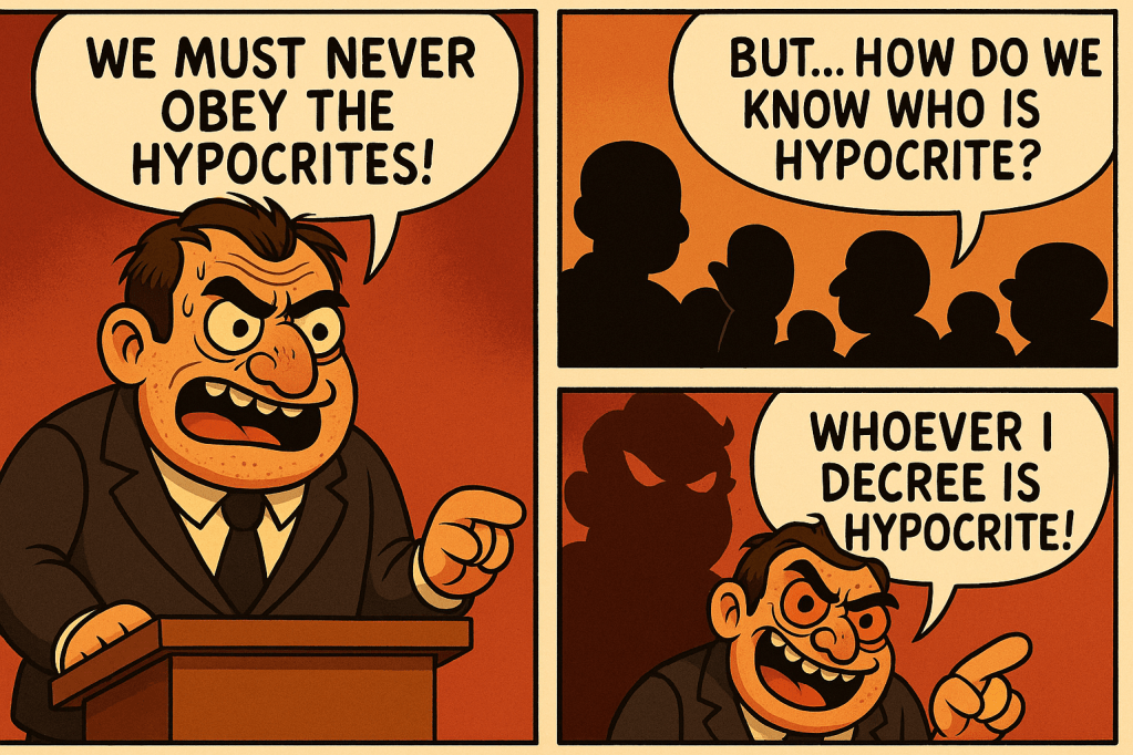 In a healthy community, such differences are opportunities for discussion, reflection, and mutual growth. But in authoritarian environments, these issues become loyalty tests. The leadership draws a line: anyone who holds the “wrong” view is no longer just mistaken—they’re a hypocrite, an agent of the devil, an enemy of God.