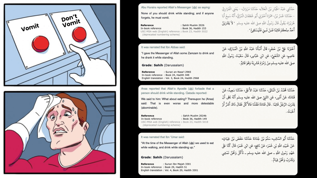 Hadith literature is riddled with contradictions. In this article, we examined only a small sample of the internal inconsistencies found within the very collections labeled sahih. We didn’t even touch on the numerous hadith that don’t meet this standard or the ones that directly contradict the Quran itself. To accept Hadith as divine revelation, then, is to reject the Quran’s own definition of what divine revelation looks like. It is to claim that God’s message is inconsistent, fragmented, and self-contradictory—something the Quran explicitly denies.