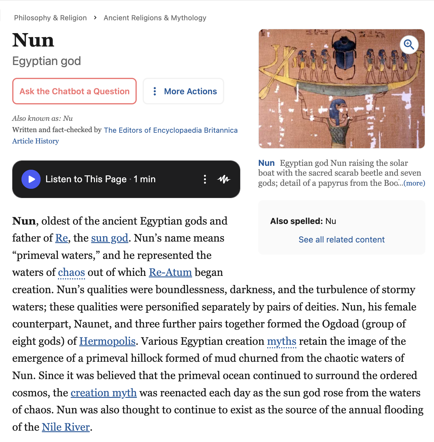 - Wikipedia, “Nu (mythology)” – on Egyptian Nun as personification of primordial waters en.wikipedia.org.