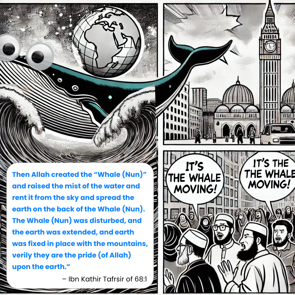 Contextualizing the “Whale” Cosmology: The idea of a cosmic whale may sound astonishing, but it was part of the folkloric cosmology in early Islamic tradition (likely influenced by earlier cultures, as discussed below). This cosmology postulates a flat earth (actually seven flat earths) stacked on a giant creature. The Qur’an itself does not explicitly mention any whale holding up the world; however, believers who accepted this imagery saw indirect allusions to it in scripture. For instance, the Qur’an describes mountains as “pegs” stabilizing the earth (Q.78:6–7), which Ibn ‘Abbas reportedly linked to the idea that without mountains the earth would shake on the whale’s back wikiislam.net. Likewise, the Qur’an (11:7) says “His Throne was upon the waters” before creation, which commentators interpreted in light of the primordial ocean from which creation began wikiislam.net. Thus, the Nun whale narrative was used to explain such verses: Allah created Nun (the primal water/creature), then placed the earth on it and anchored it with mountains, and from the waters raised up the heavens wikiislam.github.io wikiislam.github.io. Classical scholars transmitted these stories to illustrate God’s power in creation, even if the reports were isrā’īliyyāt (of Judeo-Christian origin) or weak; it was generally held that since the Qur’an itself doesn’t clarify Nun’s meaning, one could mention such historical interpretations but ultimately say “Wallāhu a‘lam” (Allah knows best) wikiislam.net.