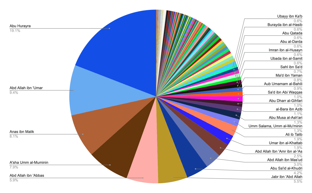 This stark distribution reveals that the bulk of hadith literature relies on the supposed testimonies of a tiny fraction of companions.