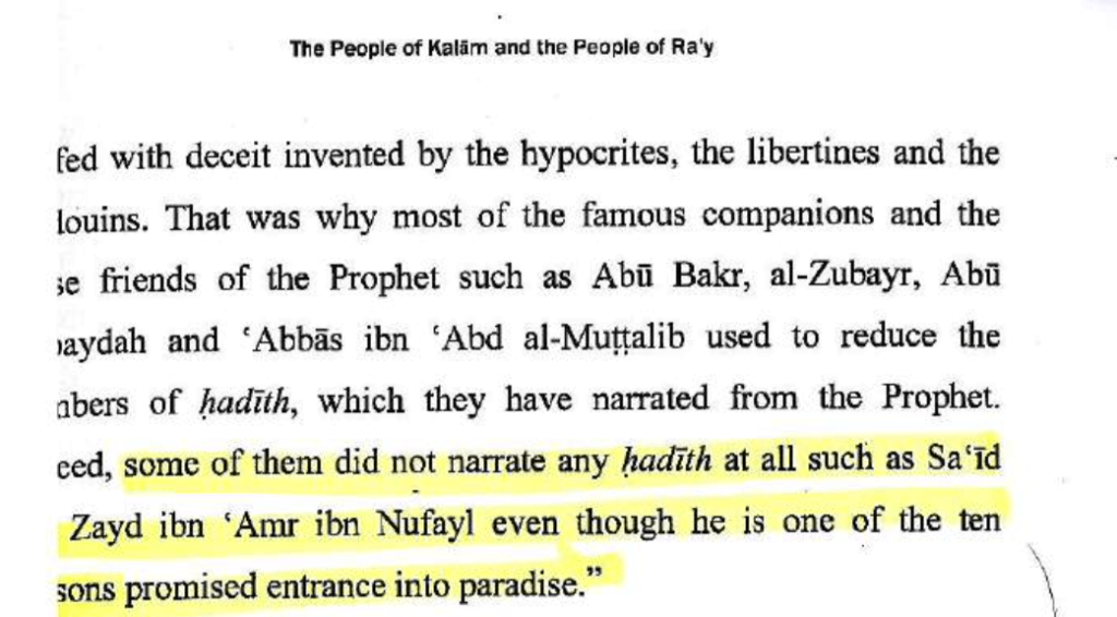 According to the book, Tawil Mukhtalif al-Hadith by Ibn Qutaybah (d. 889 CE), he highlights that many of the closest companions were apprehensive to narrate any Hadith, such as Sa’id Zayd ibn ‘Amir ibn Nufayl, who did not narrate any hadith despite being supposedly one of the ten who were promised Paradise.