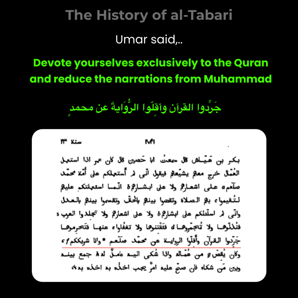 These Hadith place the Prophet in direct opposition to those who uphold the Quran alone and reject the binding authority of Hadith or Sunnah. But this narrative becomes especially problematic when compared to early historical reports attributed to the Prophet’s closest companions.