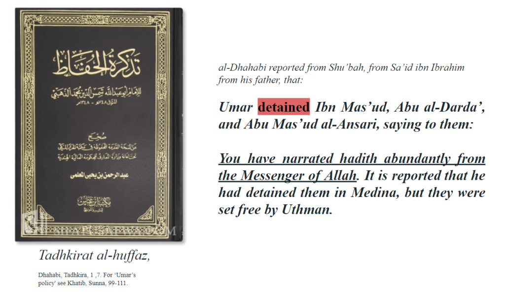 This is not an isolated incident. Numerous historical sources indicate that both Abū Bakr and ʿUmar discouraged the narration and transmission of Hadith. In some reports, they are even said to have burned early Hadith compilations and prohibited companions from spreading them.