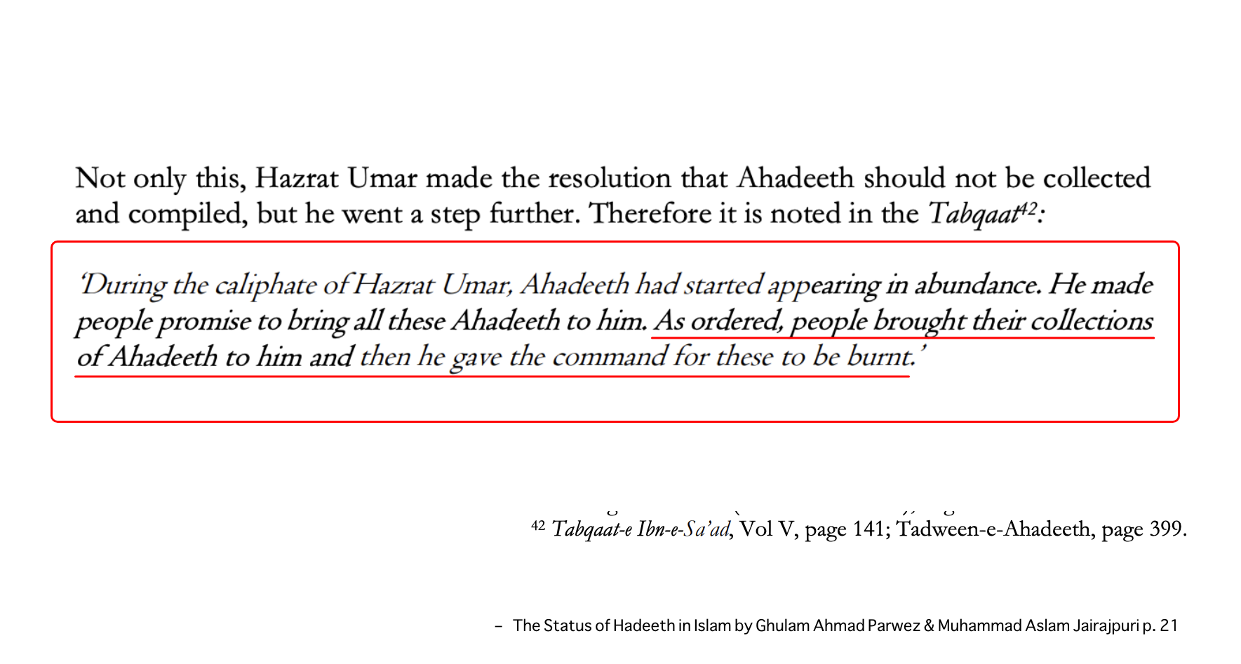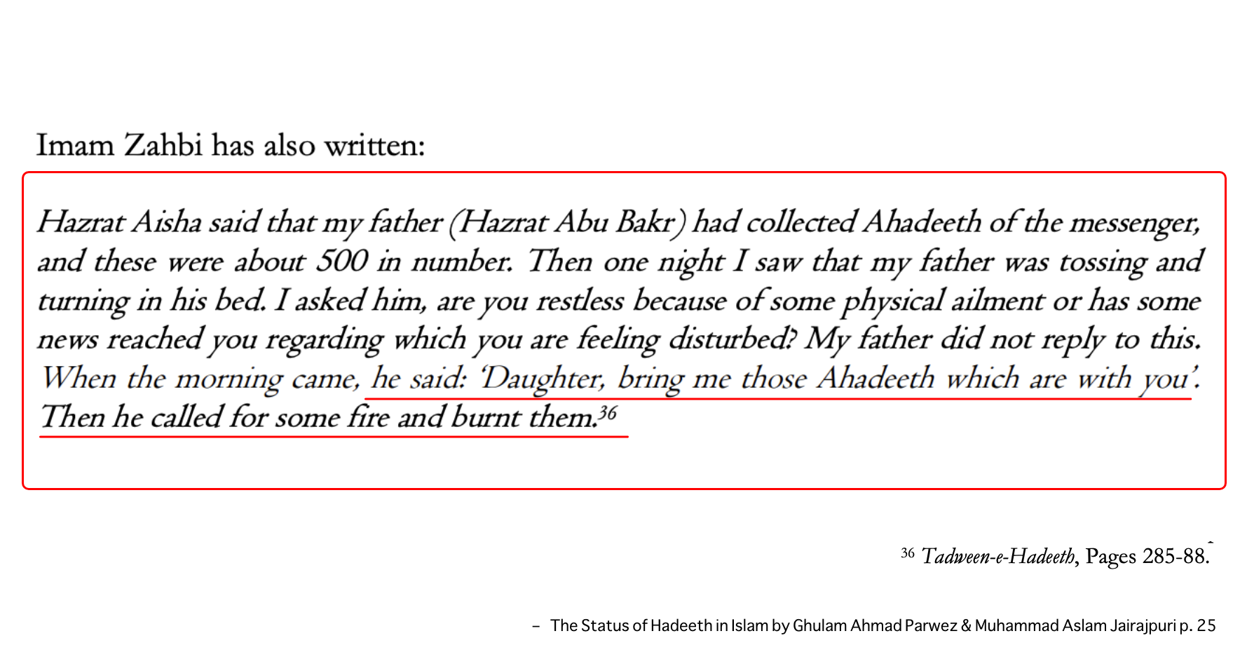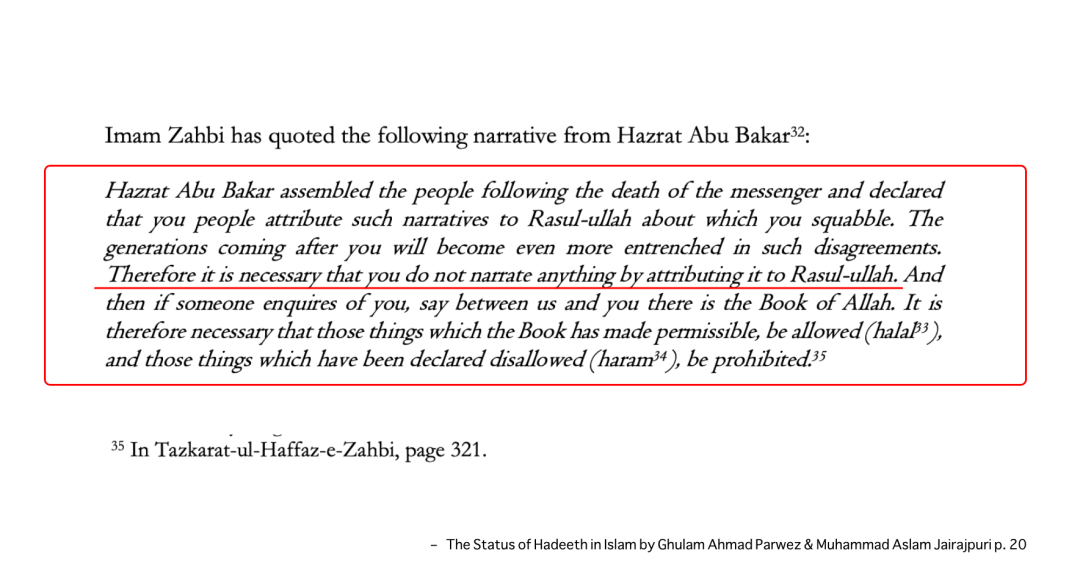 This is not an isolated incident. Numerous historical sources indicate that both Abū Bakr and ʿUmar discouraged the narration and transmission of Hadith. In some reports, they are even said to have burned early Hadith compilations and prohibited companions from spreading them.