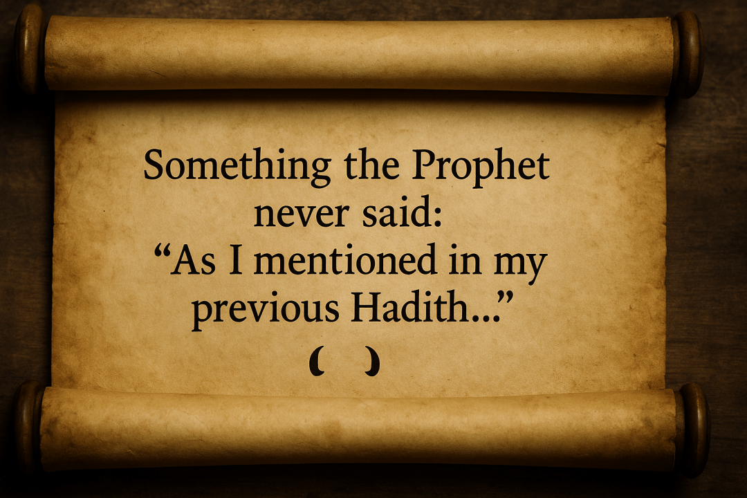 Given this very natural human habit, one might expect the Prophet Muhammad—whose ministry spanned 23 years of his life and whose sayings were meant to function as an authoritative source according to traditionalists—to have at least occasionally cited his own previous words if the hadith literature authentically preserved his speech. Yet, when we turn to the canonical hadith collections, we find something striking: this pattern appears to be entirely absent.