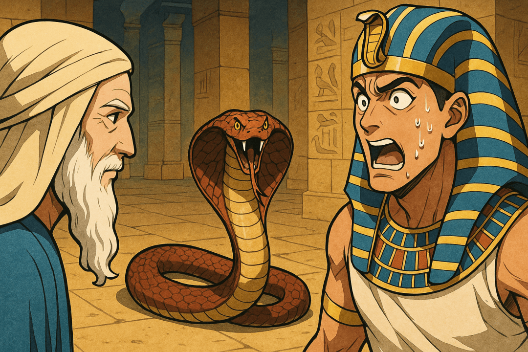 It is in this context that Moses casting down his staff must be read. The transformation of the rod into a serpent is too often imagined as mere spectacle, as if God intended only to impress or intimidate. But the ancient world spoke through symbols, and to an Egyptian audience this moment would have been unmistakable in its meaning. Moses produced not just any snake but a creature that invoked the very symbol of royal power. He was demonstrating that the god he represented had control over the Uraeus itself. The staff that became a living serpent was a direct confrontation with the very emblem of Pharaoh’s divine authority.