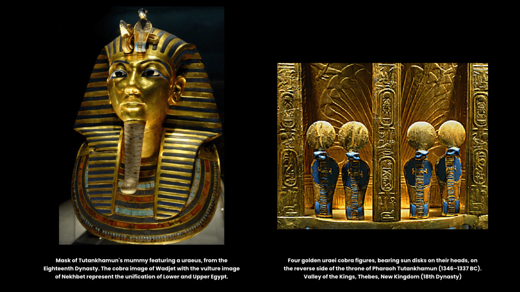 To understand ancient Egypt is to understand that symbols were realities. The Uraeus was the outward sign of a timeless proposition: that Pharaoh was the earthly incarnation of divine order. Through him the gods maintained Ma’at, the balance of cosmos and society. The Uraeus, therefore, was active and alive—ready to strike down chaos, foreigners, rebels, and those who questioned the king’s mandate. Egyptologists have long noted that this cobra appears not only on crowns but on statues, scepters, architectural lintels, and magical papyri. The image that modern eyes might dismiss as ornament was, to ancient priests and scribes, an active force. Royal inscriptions from the Middle Kingdom speak of the king “flourishing the Uraeus,” sending terror into the hearts of enemies.