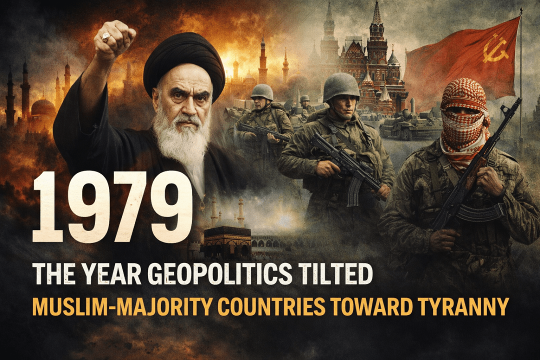 The pivotal year is 1979. Three events, each seismic on its own, converged within months of each other: Khomeini’s revolutionaries displaced the Shah and declared an Islamic Republic in Iran; a Saudi militant seized the Grand Mosque in Mecca; and the Soviet Union invaded Afghanistan, triggering a Western-backed jihad that would arm, fund, and internationalize radical Islamism for two decades. These were not coincidences. They were the ignition of pressures that had been building since at least 1967—and their combined effect was to permanently redraw what counted as normative Islam in public life across Muslim-majority societies.
